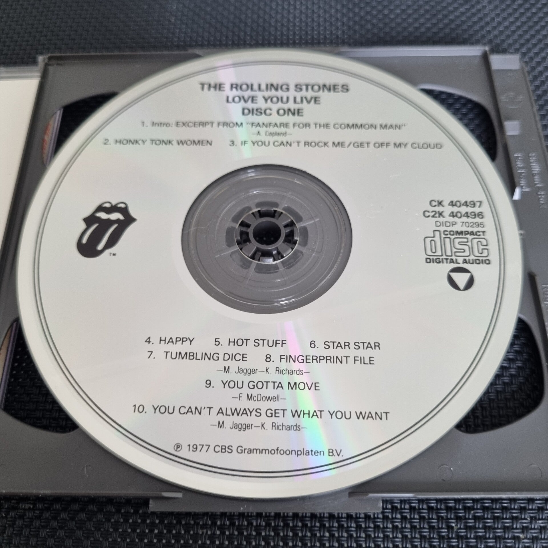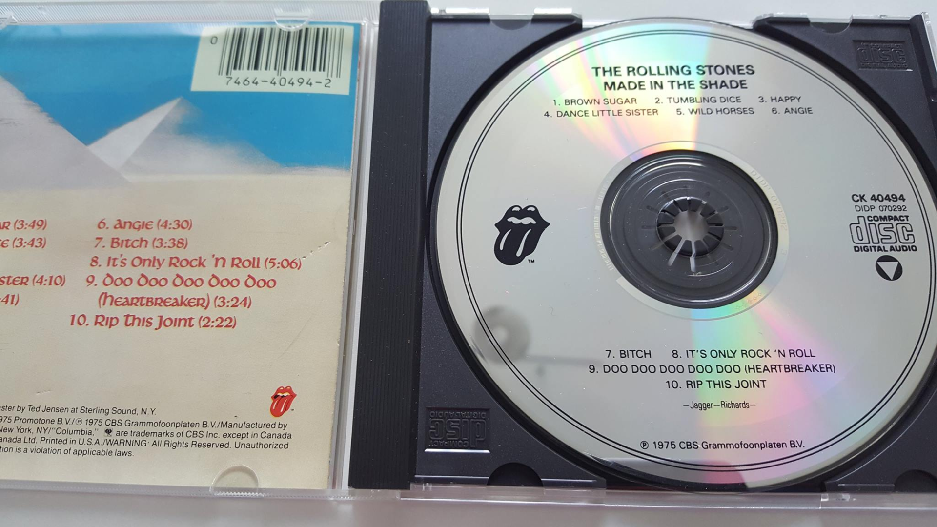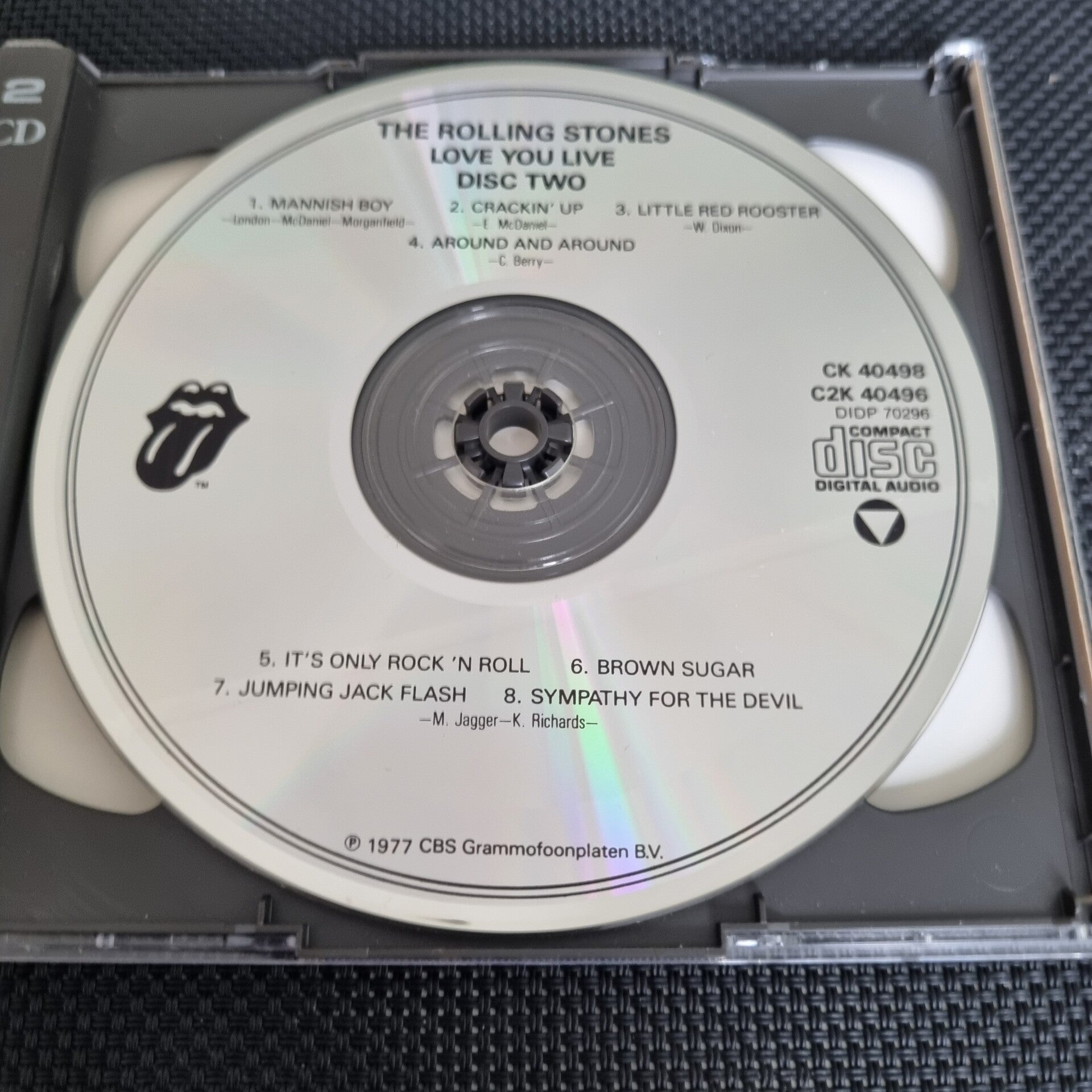 In the middle of the centre (disc 1 & disc 2) : Digital Audio Disc Corp. D Made in USA