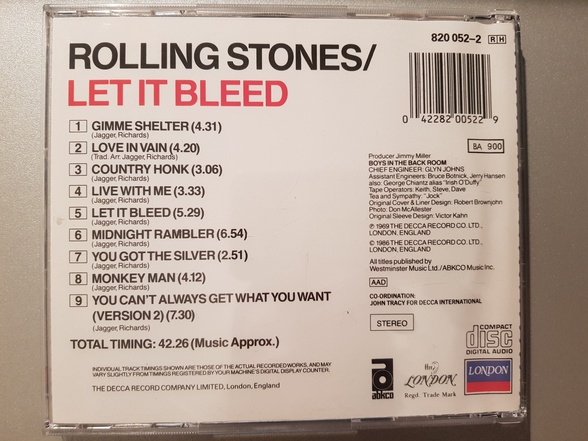 Note : I do have a another version of this CD which looks exactly the same, except the matrix reads 820052-2 03/ B this version does't have the price code on the backcover.