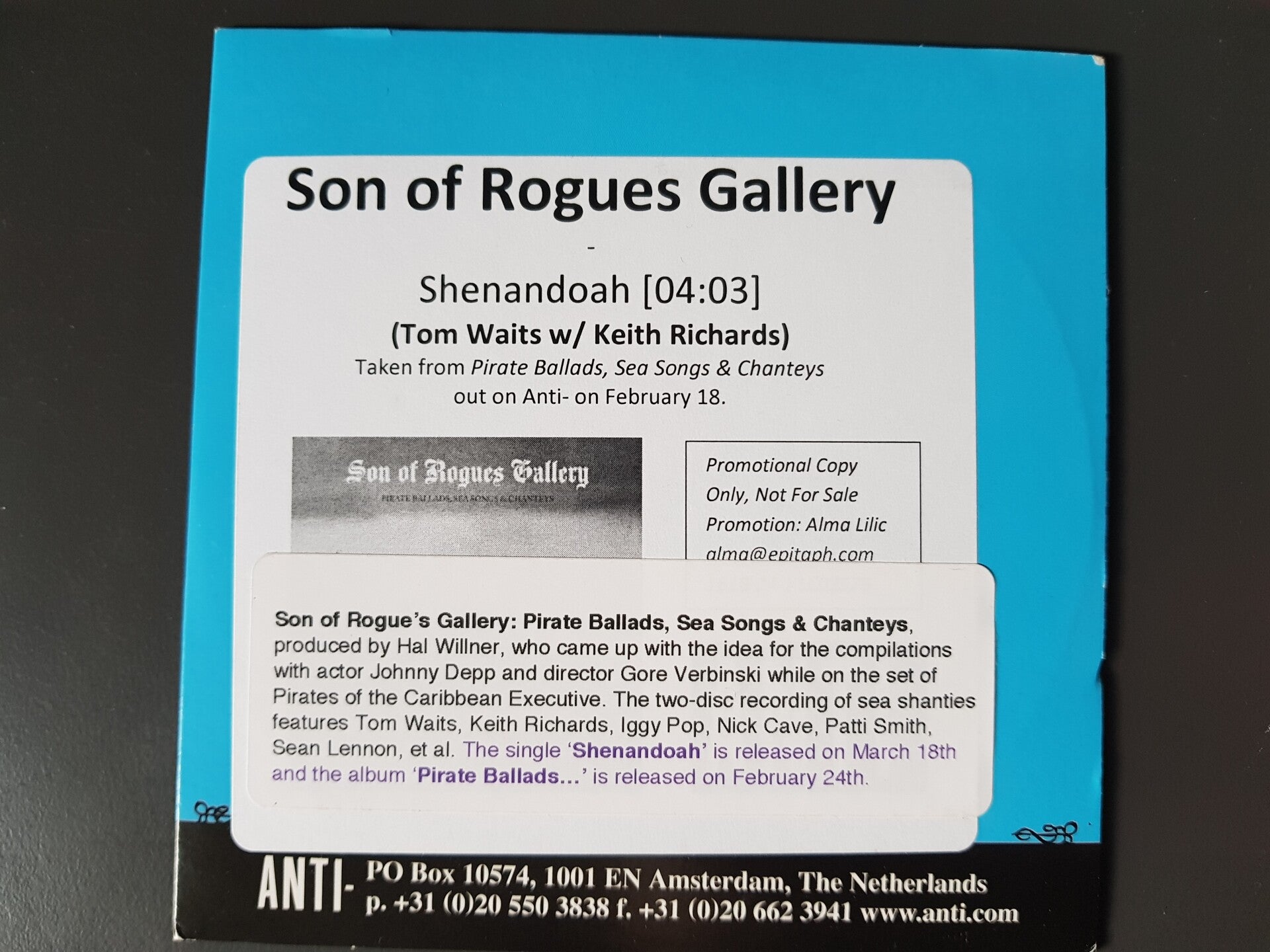 Promotional 2 CD set for the album "Pirate Ballads" PLUS a 1 track single CD (Shenandoah)