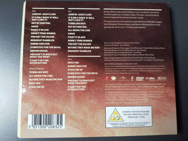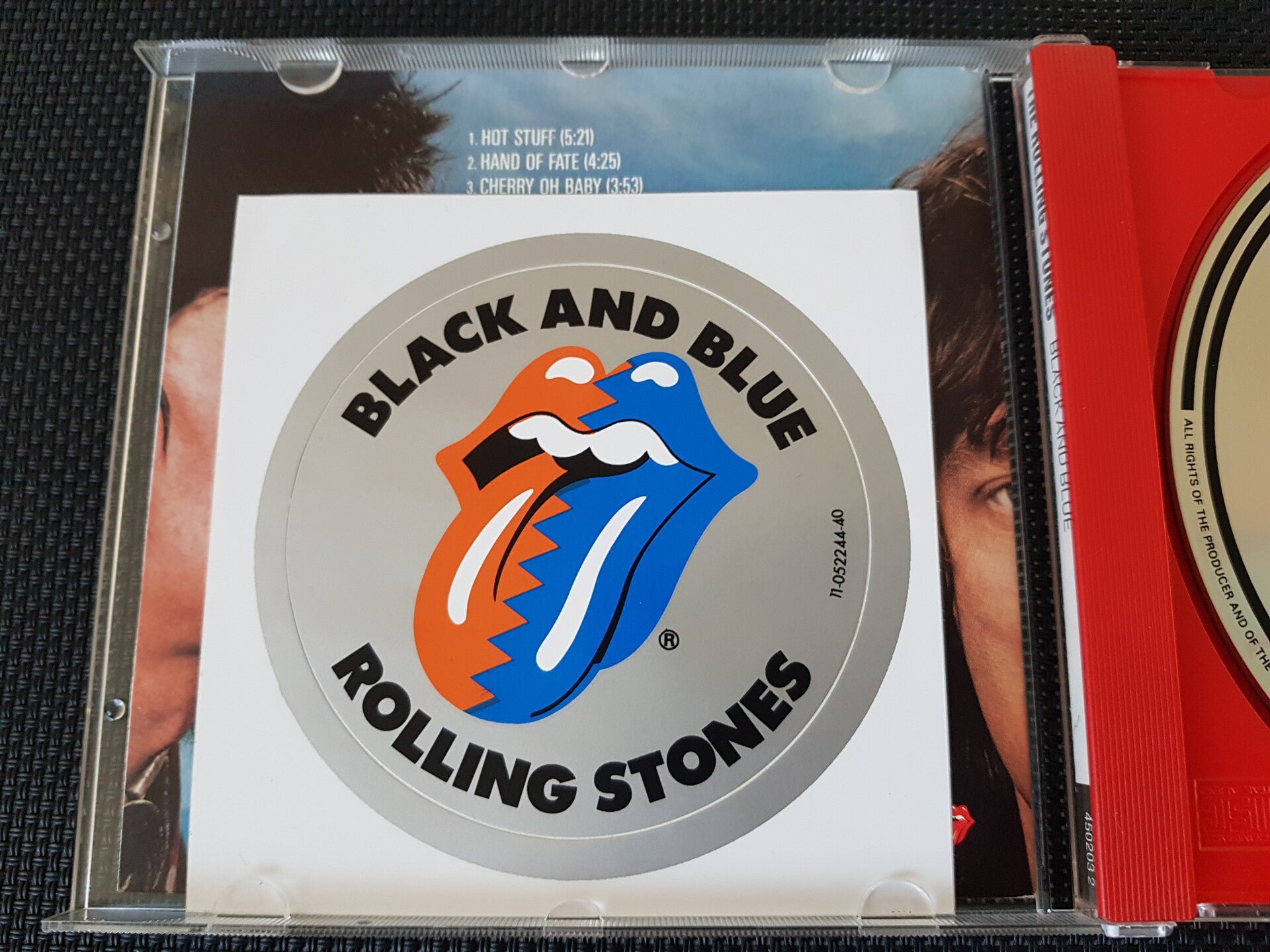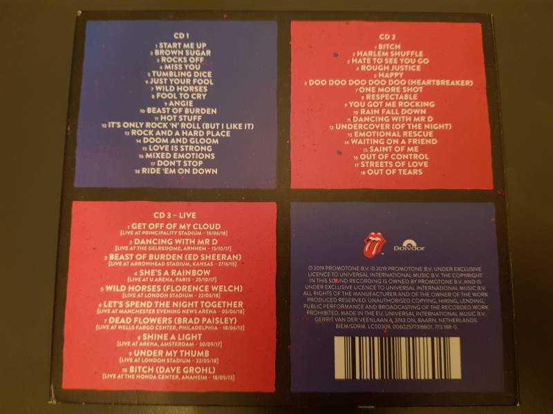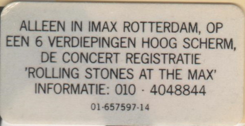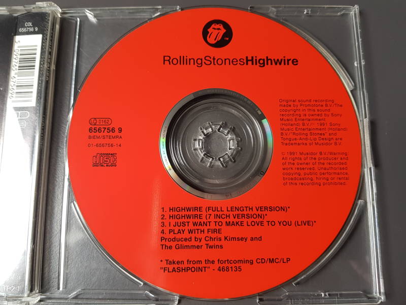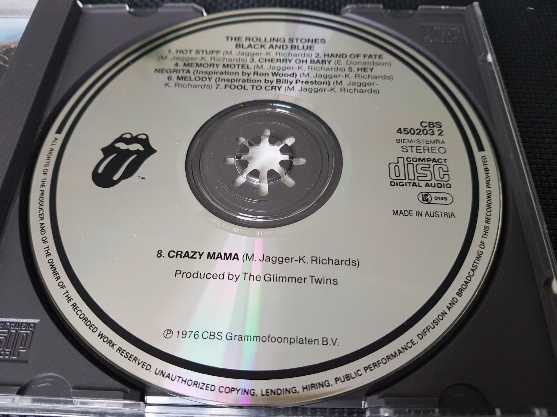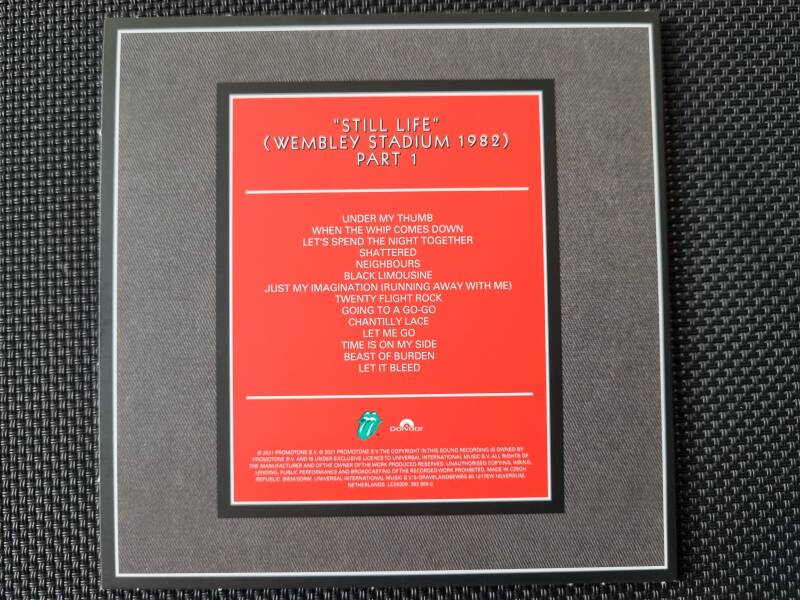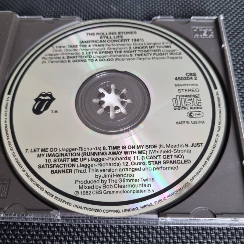 Note : Made in Austria in the "Nice Price" serie. This issue was done in a red tray. Besides that, this issue was released for the German market. On the front is one small sticker, a Steel Wheels logo sticker says : One time only, the tounge. So this one came with the round Steel Wheels logo sticker.
