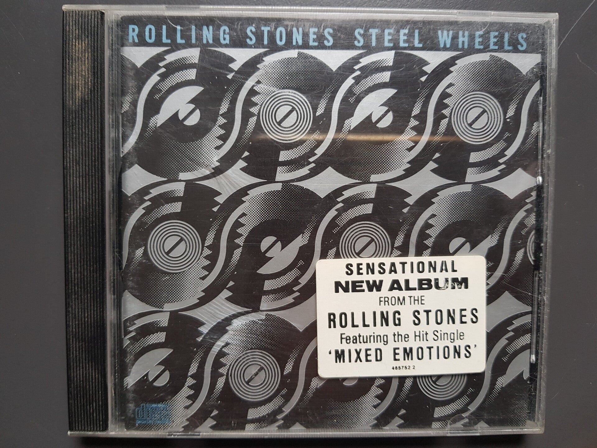 Made in Austria 1989 in the "Nice Price" serie. This issue was done in a red tray. Besides that this issue was released for the German market. On the front is small Steel Wheels logo sticker says : One time only, the tounge. So this one came with the round Steel Wheels logo sticker.