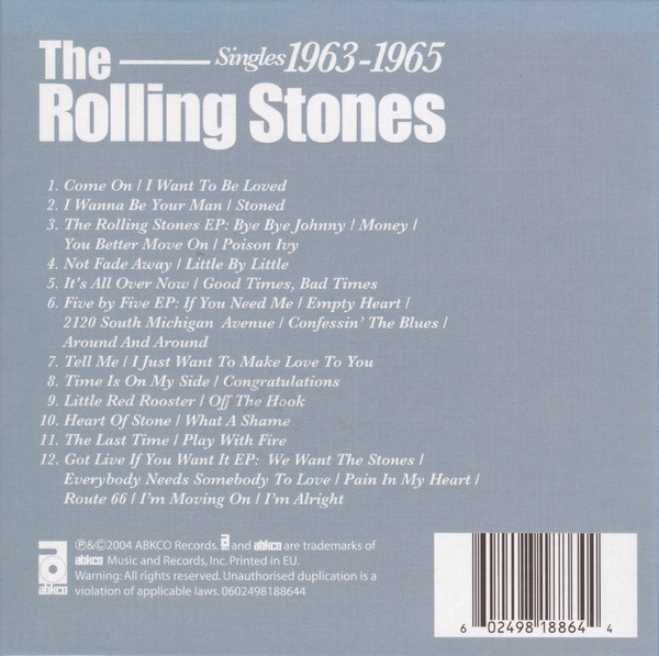 Note : First of 3 box sets collecting the band's US & UK singles & EP's on Decca from 1963 to 1971. Discs are coloured black on the underside and have grooves and a label on the top to make them appear more like vinyl. Box also includes a booklet & 3 prints.(the second boxset was made in Germany, see the German section).