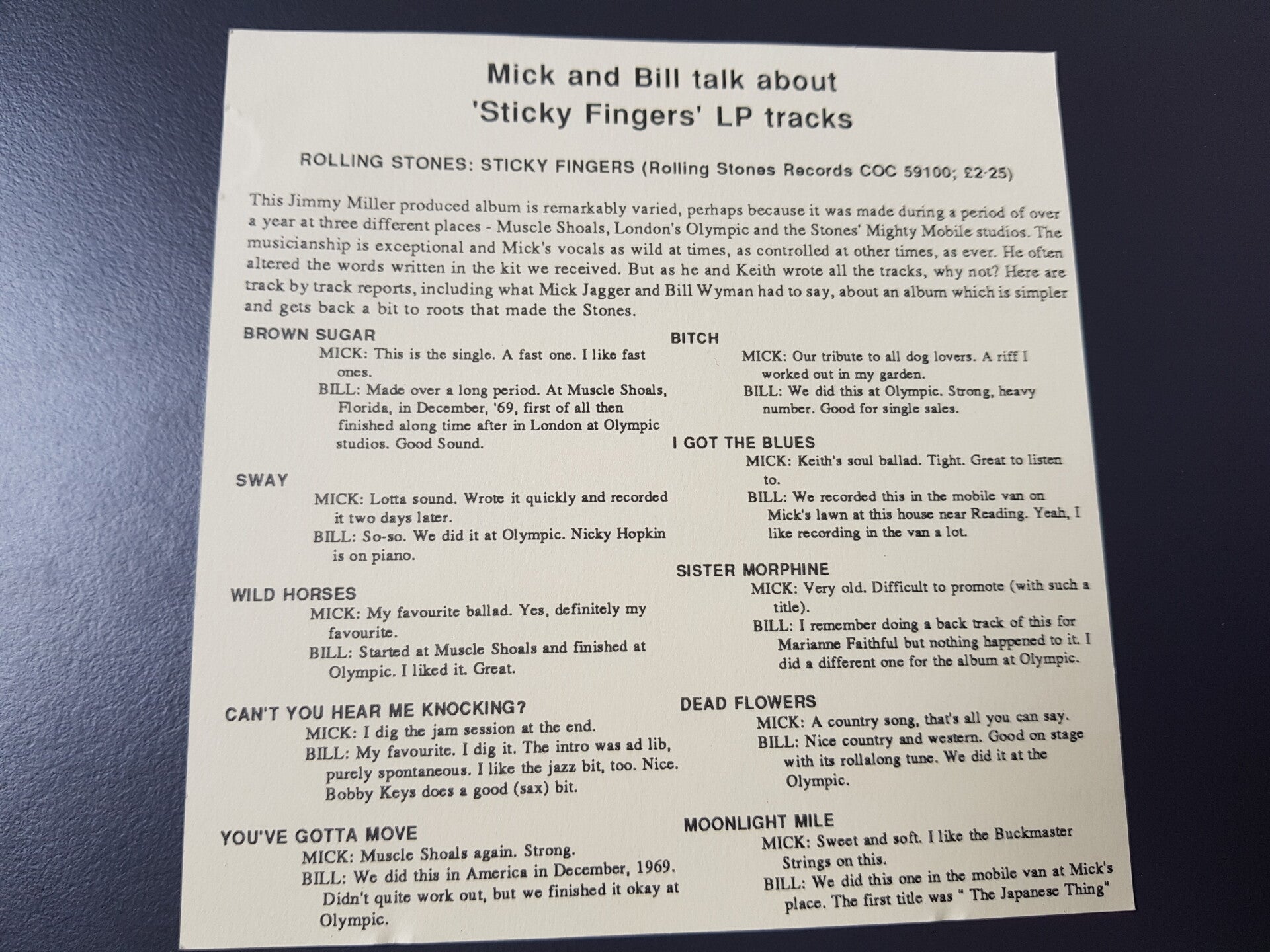 Sticky fingers CBS450195 2 Matrix. CDCBS-450195 33 B2 MASTERED BY DADC AUSTRIA