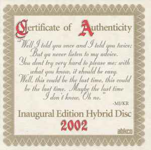Note : This rare SACD issue has a gold layer. the CD was made in Germany while the fold out digipack says Printed in the USA.